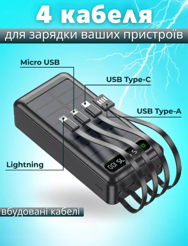 Підтримка швидкої зарядки означає: менше часу — більше енергії. У комплекті відразу 4 кабелі